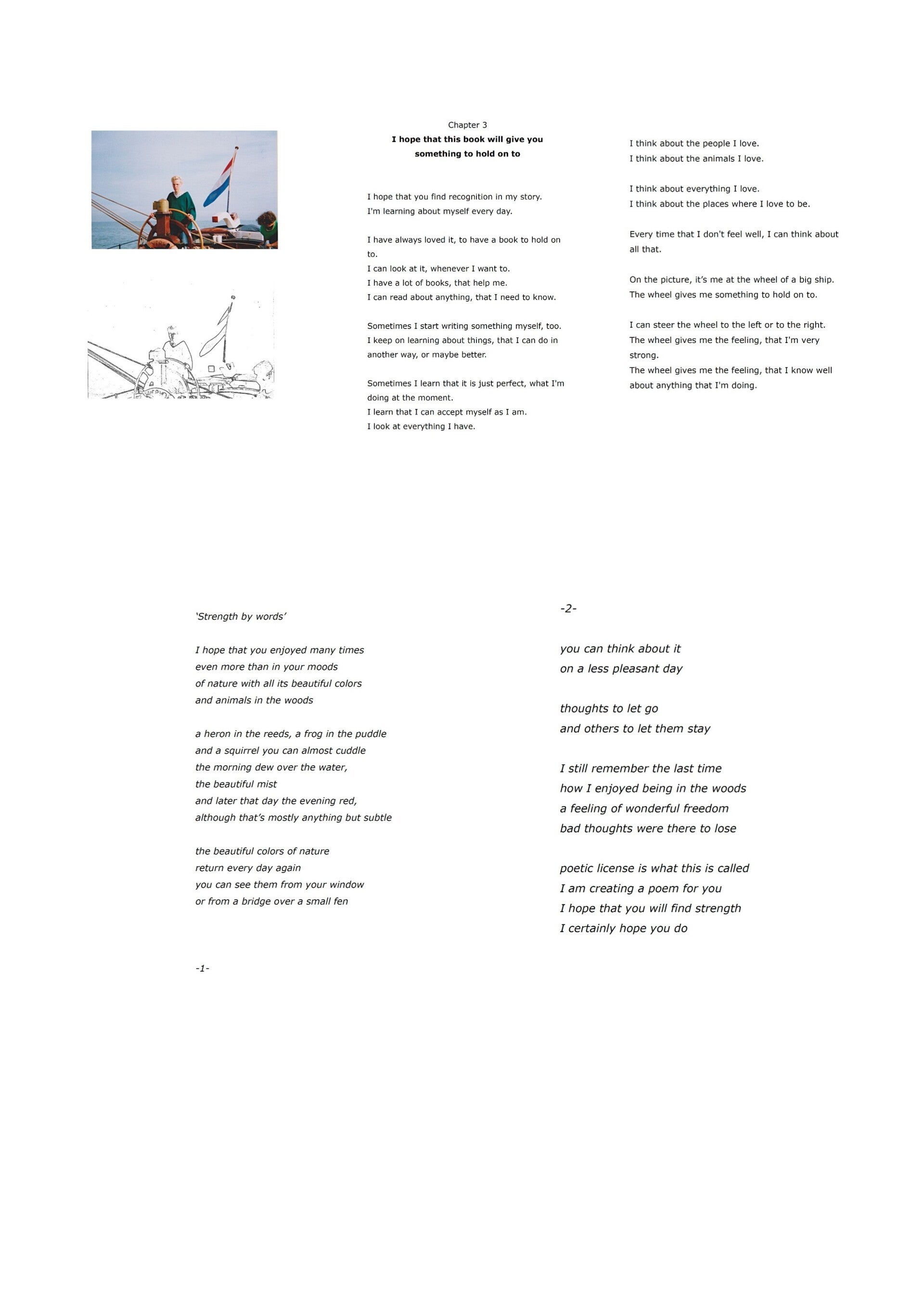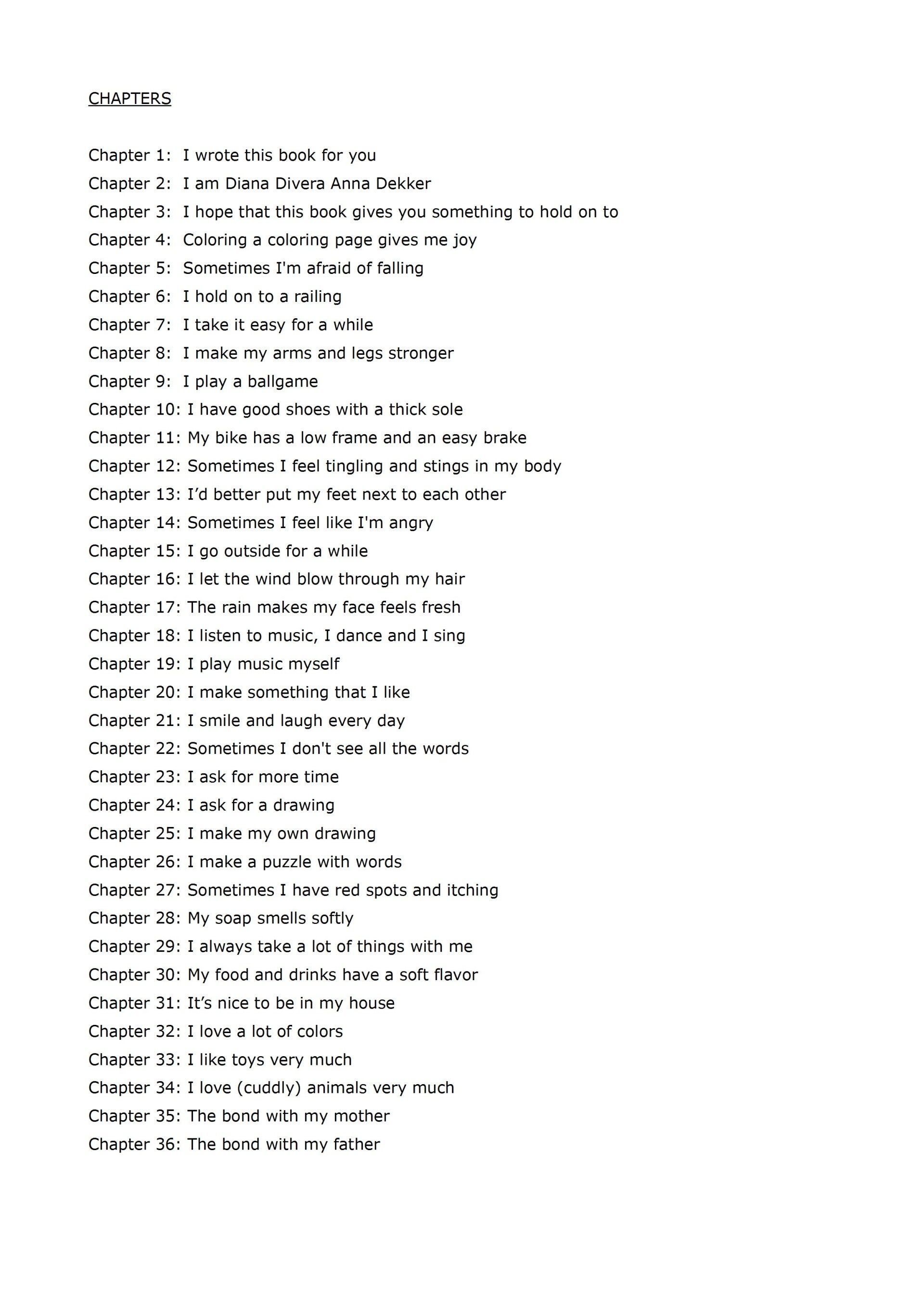 - My new book for (young) adults contains 284 pages and 36 chapters, the 2 last chapters are about the bond I had with my parents